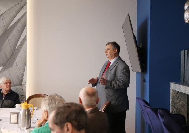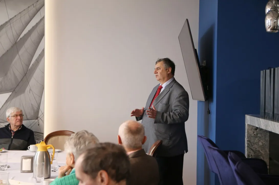 Gości powitał organizator noworocznego spotkania, Przewodniczący NSZZ Solidarność Marek Lubowiecki. JM Rektor prof. dr hab. inż. kpt. ż.w. Adam Weintrit. w swoim wystąpieniu opowiedział o kierunkach rozwoju Uczelni, realizowanych inwestycjach, powstającym Centrum Offshore i trwającej budowie Centrum Sportu i Rekreacji.
