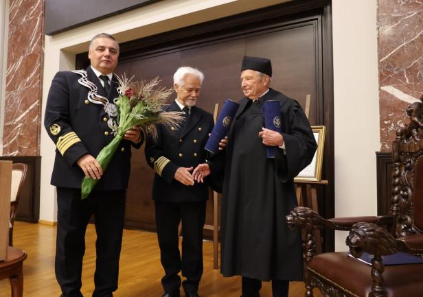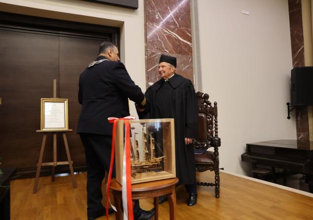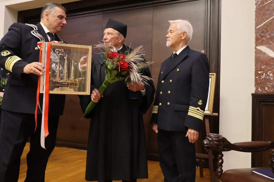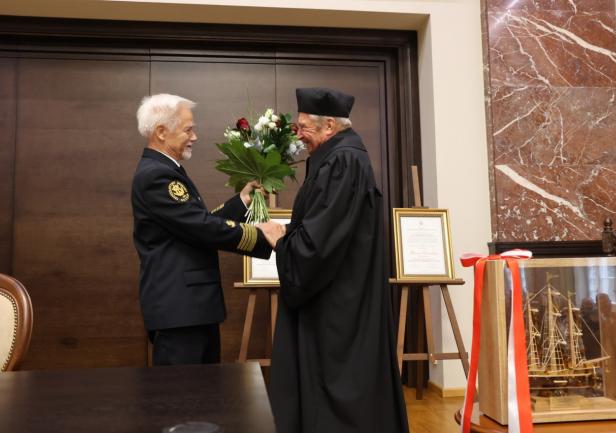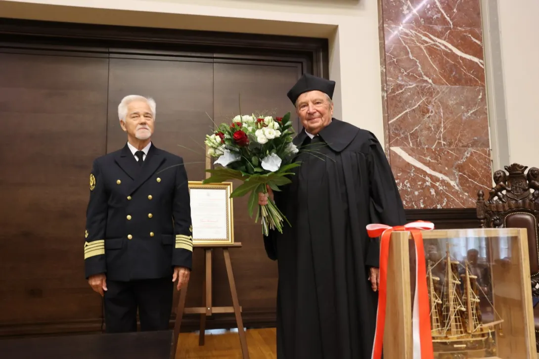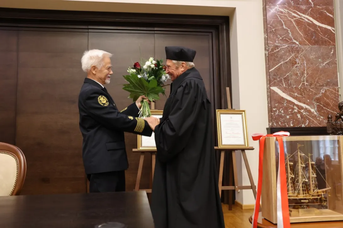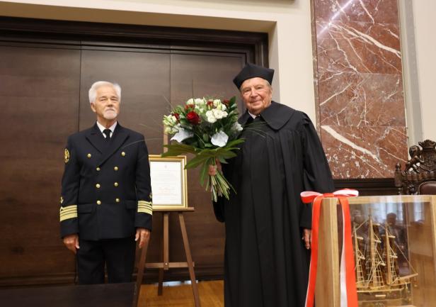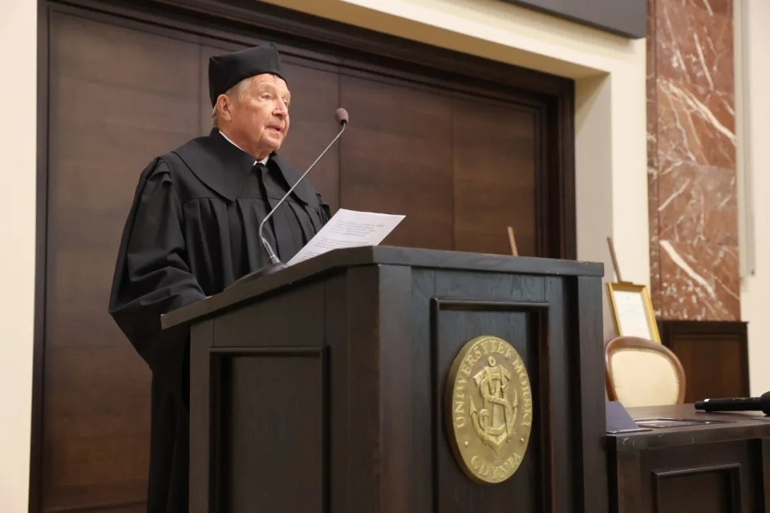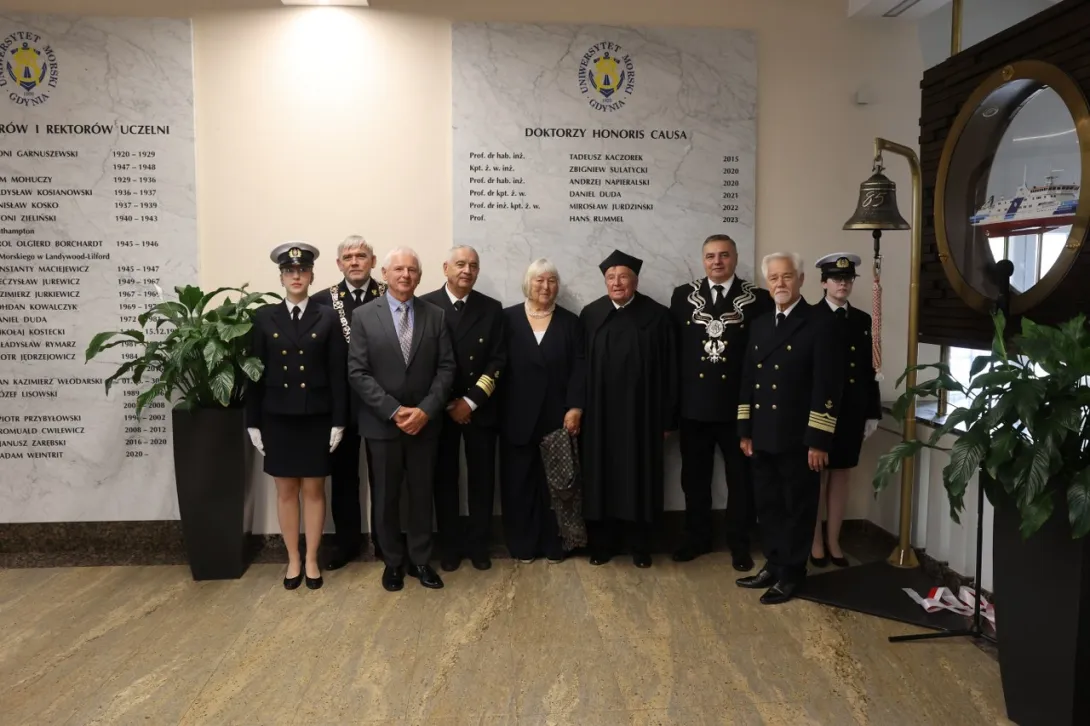 Prof. Hans Rummel z Hochschule Bremerhaven otrzymał w piątek, 6 października 2023 roku tytuł doktora honoris causa Uniwersytetu Morskiego w Gdyni. Jest to jedno z najwyższych wyróżnień w świecie akademickim. Do tej pory Uniwersytet Morski w Gdyni przyznał pięć takich tytułów - profesor Hans Rummel jest pierwszym zagranicznym przedstawicielem świata nauki, który otrzymał taką godność.