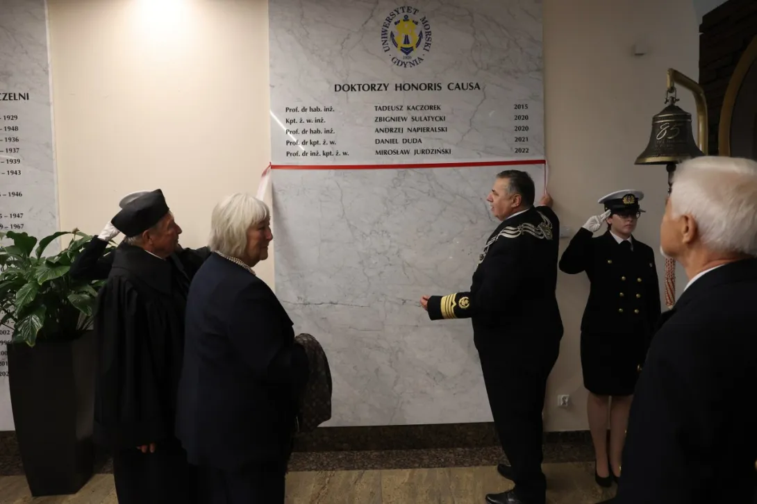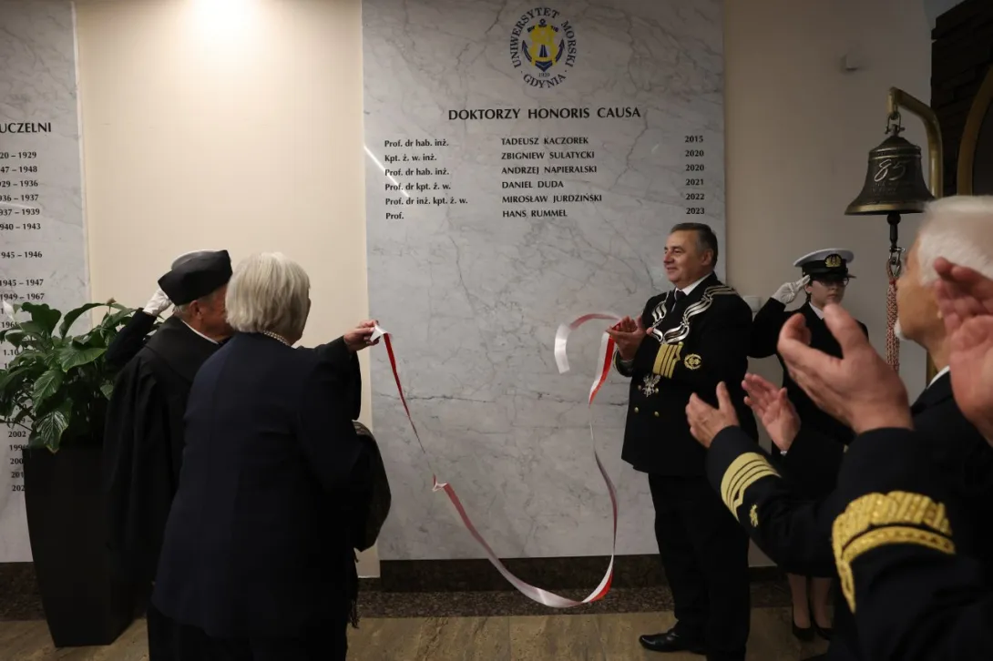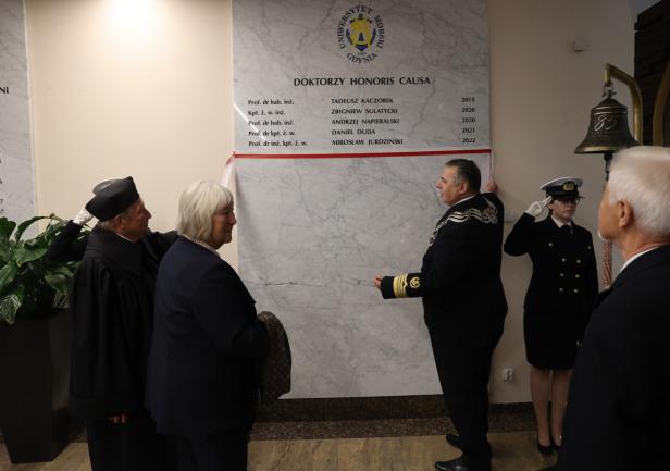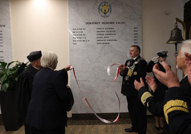Na zakończenie uroczystości odsłonięto nazwisko prof. Hansa Rummla na tablicy upamiętniającej przyznanie tytułów Doktora Honoris Causa Uniwersytetu Morskiego w Gdyni.