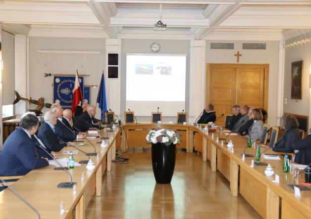 JM Rektor zwrócił uwagę na szczególną misję i zadania stojące przez Uniwersytetem jako wyższą uczelnią morską, która w spektrum swoich aspiracji, zainteresowań i działań, zarówno odnośnie badań naukowych, jak i kształcenia, musi mieć wszystko, co się dzieje na morzu, co jest związane z rozwojem technologii morskiej, mówiąc krótko, która musi przewidywać, co może się wydarzyć na morzu w niedalekiej przyszłości.
