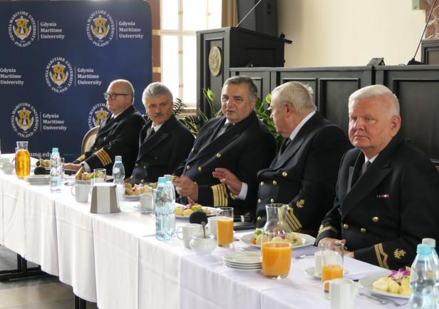 W spotkaniu udział wzięli JM Rektor, prof. dr hab. inż. kpt. ż.w. Adam Weintrit, Prorektor ds. Współpracy i Rozwoju prof. dr hab. inż. Tomasz Tarasiuk, kpt. ż.w. Waldemar Frankiewicz, który od 14 czerwca b.r. zostaje komendantem „Daru Młodzieży”, a także Przewodniczący Związku Zawodowego Pracowników UMG dr inż. Jacek Hałaczkiewicz, Przewodniczący NSZZ Solidarność Marek Lubowiecki i Kierownik Biura Promocji i Komunikacji mgr inż. Bartosz Tobieński.
