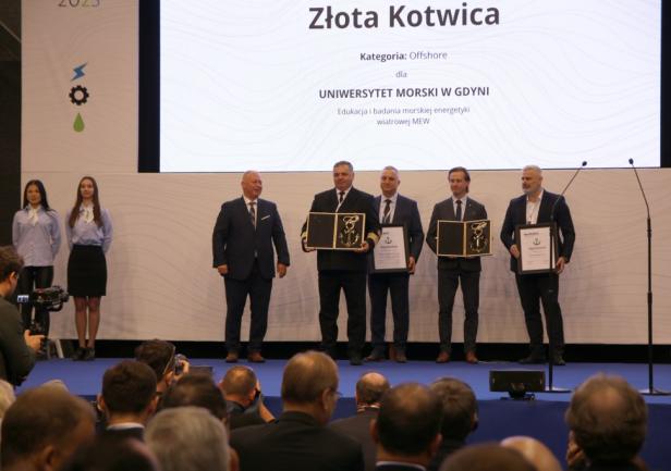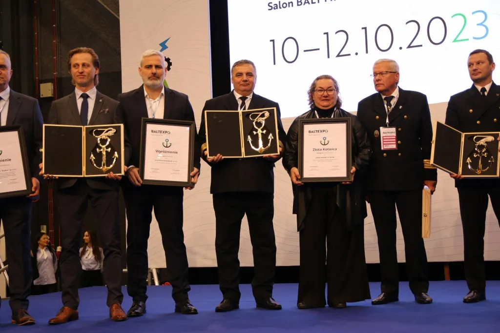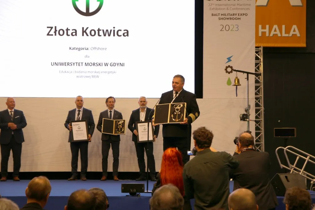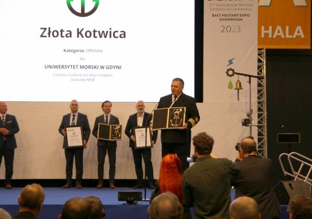 Złota Kotwica BALTEXPO 2023 jest nagrodą przyznawaną przedsiębiorstwom i instytucjom, których projekt, produkt, usługa, działania lub osiągnięcia w okresie dwóch lat od ostatniej edycji Targów mają lub mogą mieć znaczący wpływ na rozwój gospodarczy. Nagrody przyznawane są w pięciu kategoriach tematycznych i dwóch specjalnych. Nasza Uczelnia otrzymała Złotą Kotwicę w kategorii „Offshore” za „edukację i badania na potrzeby morskiej energetyki wiatrowej”. Nagrodę z rąk Prezesa Międzynarodowych Targów Gdańskich Andrzeja Bojanowskiego odebrał prof. dr hab. inż. kpt. ż.w. Adam Weintrit. Dziękując kapitule za przyznanie prestiżowej nagrody, JM Rektor powiedział: