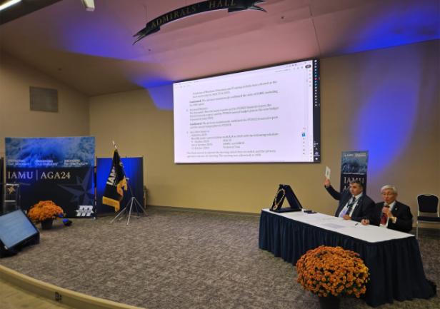 Kolejnego dnia odbyła się 24. edycja Zgromadzenia Ogólnego Stowarzyszenia IAMU AGA 2024, pod przewodnictwem prof. Adama Weintrita, podczas którego zatwierdzono zaproponowane przez IEB zmiany oraz uchwalono budżet na nadchodzący okres finansowy. Tego samego dnia miało także miejsce tradycyjne zebranie rektorów uczelni morskich reprezentujących wszystkie kontynenty - tzw. President’s Forum, które poprowadził prezydent Massachusetts Maritime Academy Rear Admiral Francis X. McDonald.