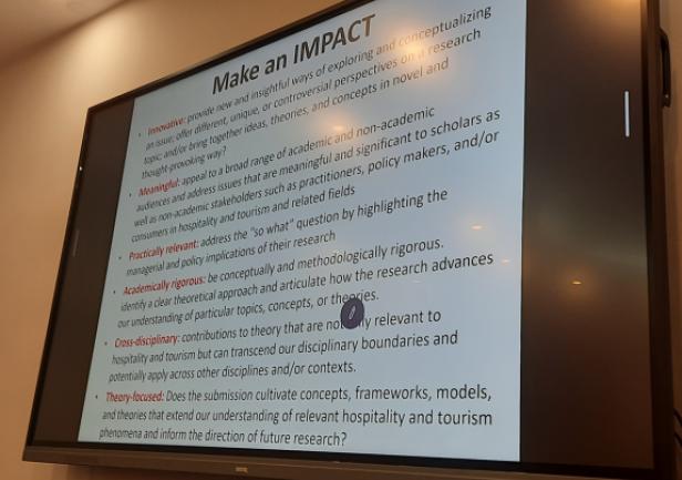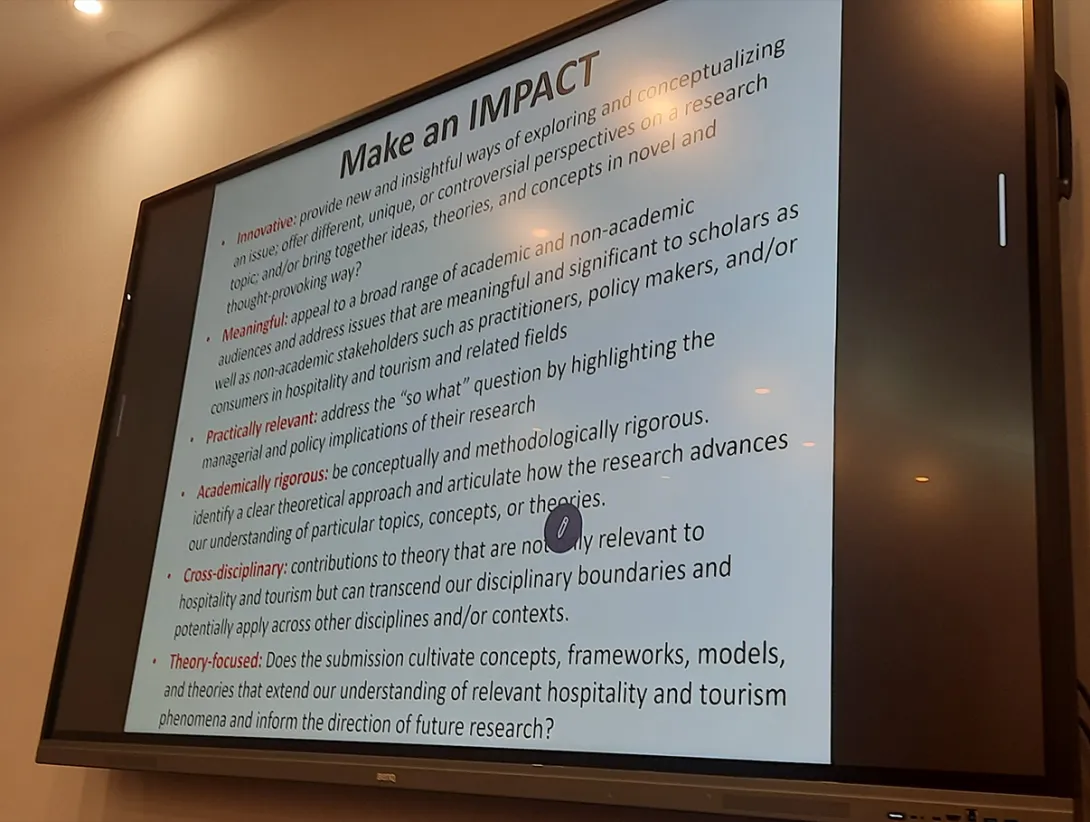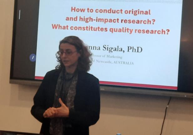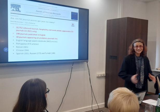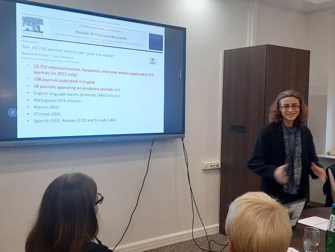 Seminarium prowadziła prof. Marianna Sigala the University of Newcastle z Australii (link: https://www.newcastle.edu.au/profile/marianna-sigala), wybitna i uznana na arenie międzynarodowej ekspertka. Prof. Sigala pełni funkcję redaktor naczelnej Journal of Hospitality & Tourism Management oraz współredaktor Journal of Service Theory & Practice. Jest autorytetem w dziedzinie zarządzania, marketingu i gospodarki turystycznej, a jej doświadczenie i wiedza okazały się bezcenne dla uczestników wydarzenia. Podczas seminarium prof. Sigala szczegółowo omówiła proces publikacyjny, oczekiwania prestiżowych czasopism naukowych oraz strategie zwiększania widoczności i jakości publikacji naukowych.