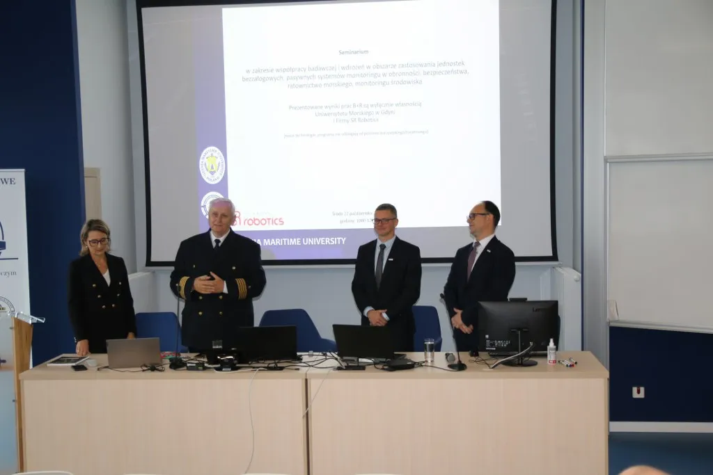 W dniu 22 października 2024 roku na Wydziale Nawigacyjnym Uniwersytetu Morskiego w Gdyni odbyło się seminarium poświęcone prezentacji wyników badań i wdrożeń Uniwersytetu Morskiego w Gdyni oraz Firmy SR Robotics w obszarach systemów podwójnego przeznaczenia.
