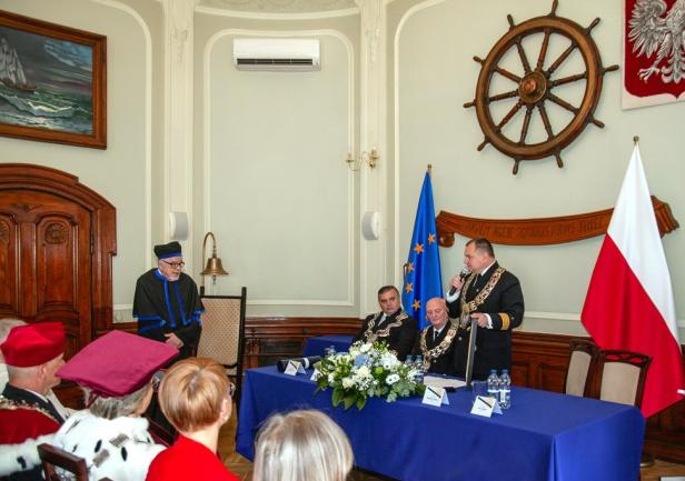 Już sam wybór na cztery kadencje rektorskie wystarczyłby do nadania tego zaszczytnego tytułu. Większość rozwiązań Twojego autorstwa stosuje się w praktyce. Wszystkie porty od Szczecina po Gdynię noszą Twój ślad – mówił o zasługach prof. Gucmy podczas uroczystości JM Rektor UMG prof. dr hab. inż. kpt. ż.w. Adam Weintrit.