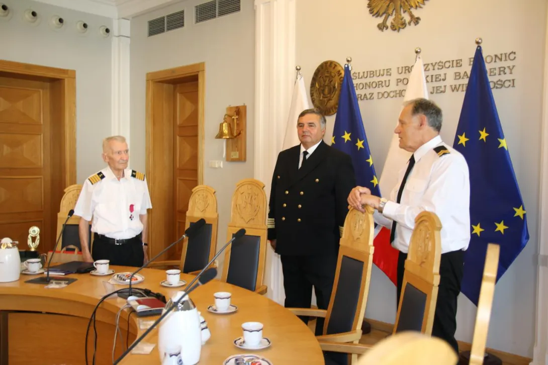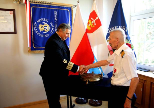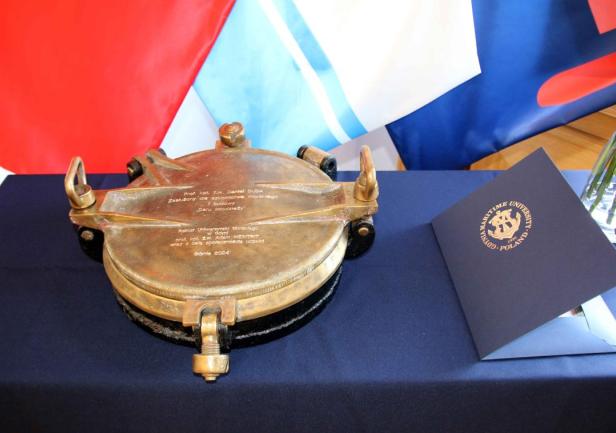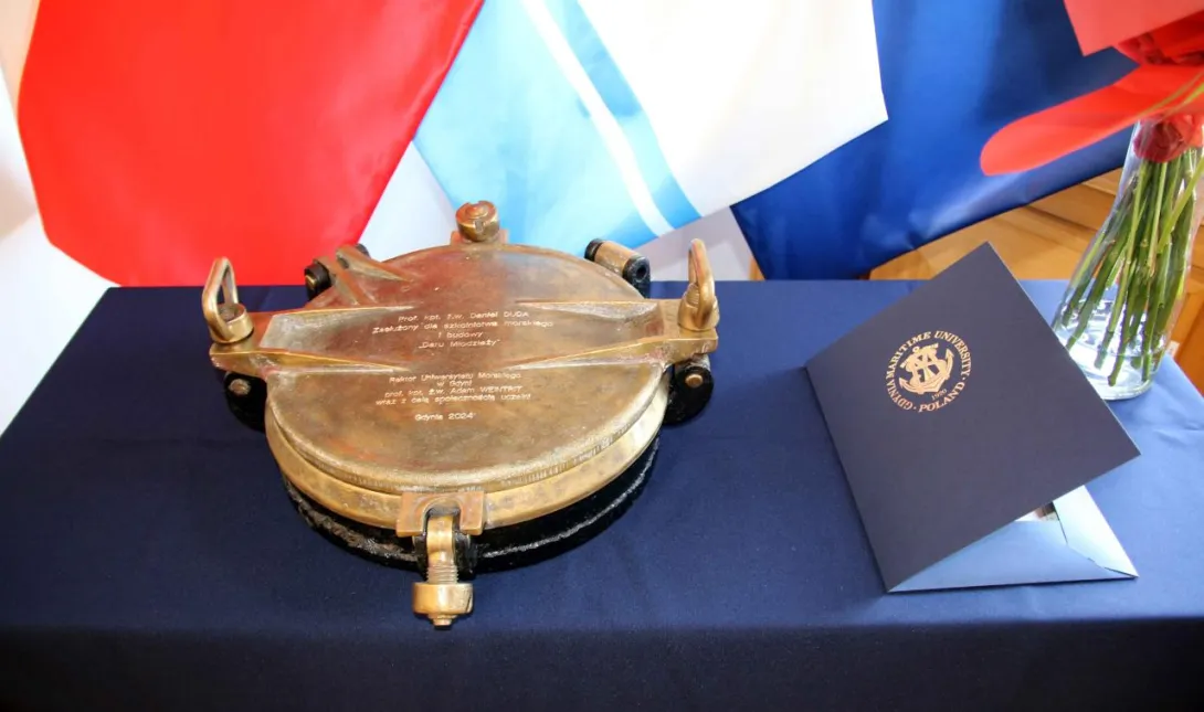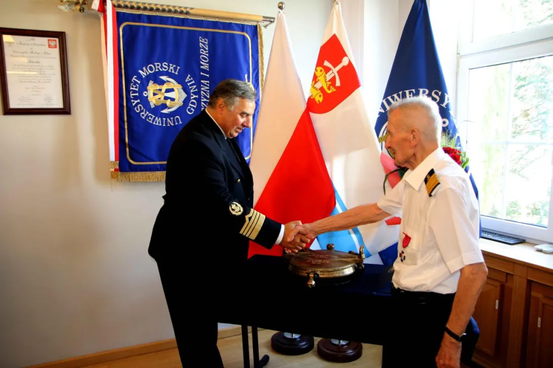W dniu 20 sierpnia 2024 roku w Sali Senatu Uniwersytetu Morskiego w Gdyni odbyła się uroczystość wręczenia Panu prof. dr. kpt. ż.w. Danielowi Dudzie pamiątkowego bulaju z 1. rejsu „Daru Młodzieży”. Symbolicznego przekazania tego wyjątkowego przedmiotu na ręce Rektora Uczelni w latach 1972-1981 dokonał JM Rektor prof. dr hab. inż. kpt. ż.w. Adam Weintrit.