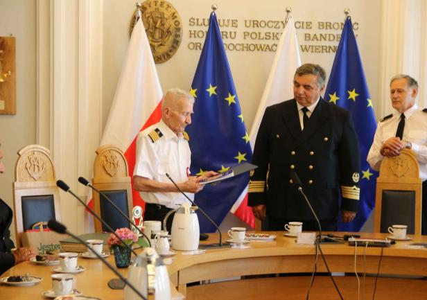 W uroczystości udział wzięli Pan Prorektor ds. Kształcenia dr hab. Sambor Guze, prof. UMG, Pan Prorektor ds. Nauki dr hab. Dariusz Barbucha, prof. UMG, Pan Tomasz Augustyniak Wiceprezydent Miasta Gdyni, Pan Szymon Kulas p.o. Dyrektora Narodowego Muzeum Morskiego, Pan Dyrektor Działu Armatorskiego i Praktyk Morskich mgr kpt. ż.w. Dariusz Jellonnek, Przewodniczący Stowarzyszenia Kapitanów Żeglugi Wielkiej oraz Prezes Prezydium Zarządu Głównego Ligii Morskiej i Rzecznej Pan dr inż. kpt. ż.w. Andrzej Królikowski, a także uczestnicy pamiętnego rejsu - Pan dr hab. inż. kpt. ż.w. Henryk Śniegocki, prof. UMG oraz komendant „Daru Młodzieży” Pan kpt. ż.w. Mirosław Peszkowski.