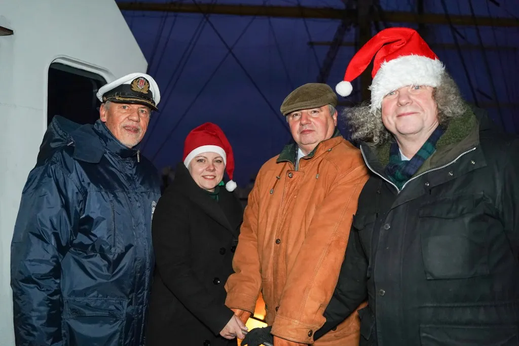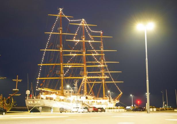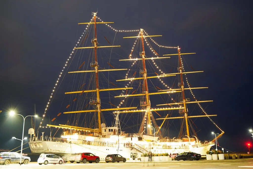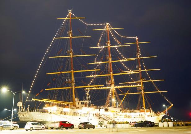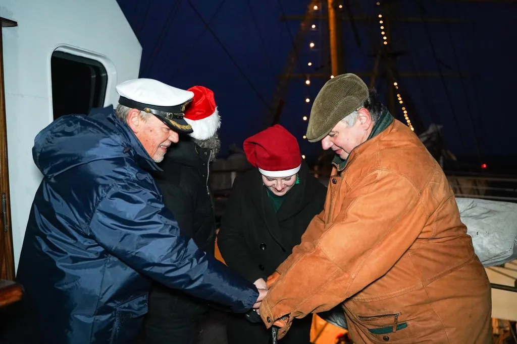 W dniu 6 grudnia 2024 roku, w tradycyjne Mikołajki, po raz kolejny na „Darze Młodzieży”, rozbłysły światełka najwyższej choinki w Trójmieście. Punktualnie o godz. 16:00 JM Rektor prof. dr hab. inż. kpt. ż. w. Adam Weintrit wraz z Panią Prezydent Gdyni Aleksandrą Kosiorek, Dyrektorem Działu Armatorskiego i Praktyk Morskich mgr. inż. kpt. ż.w. Dariuszem Jellonnkiem oraz Komendantem „Daru Młodzieży” kpt. ż.w. Mirosławem Peszkowskim wspólnie zapalili świetlną girlandę w kształcie choinki na grotmaszcie szkolnej fregaty Uniwersytetu Morskiego w Gdyni.