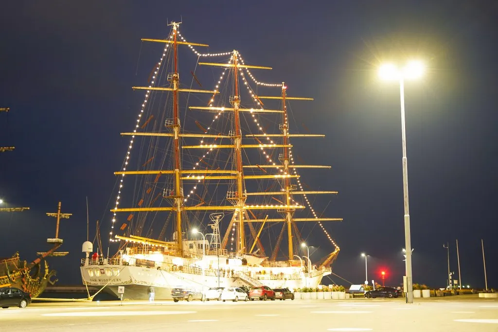 Już świeci! Najwyższa choinka w Trójmieście na grotmaszcie "Daru Młodzieży"