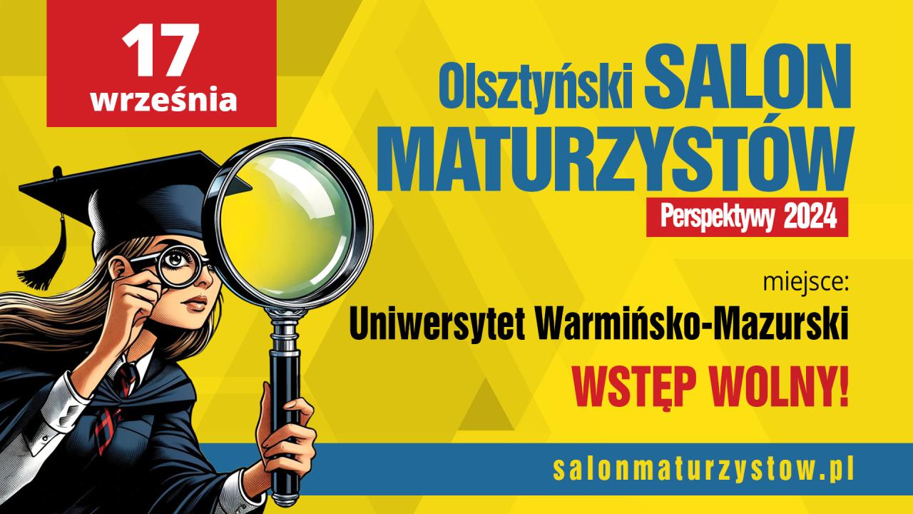 17 października 2024 r. w godzinach 9.00 – 15.00 Uniwersytet Morski w Gdyni weźmie udział w Olsztyńskim Salonie Maturzystów PERSPEKTYWY 2024, który odbędzie się na Uniwersytecie Warmińsko-Mazurskim (Centrum Konferencyjne ul. Dybowskiego 11 w Olsztynie).