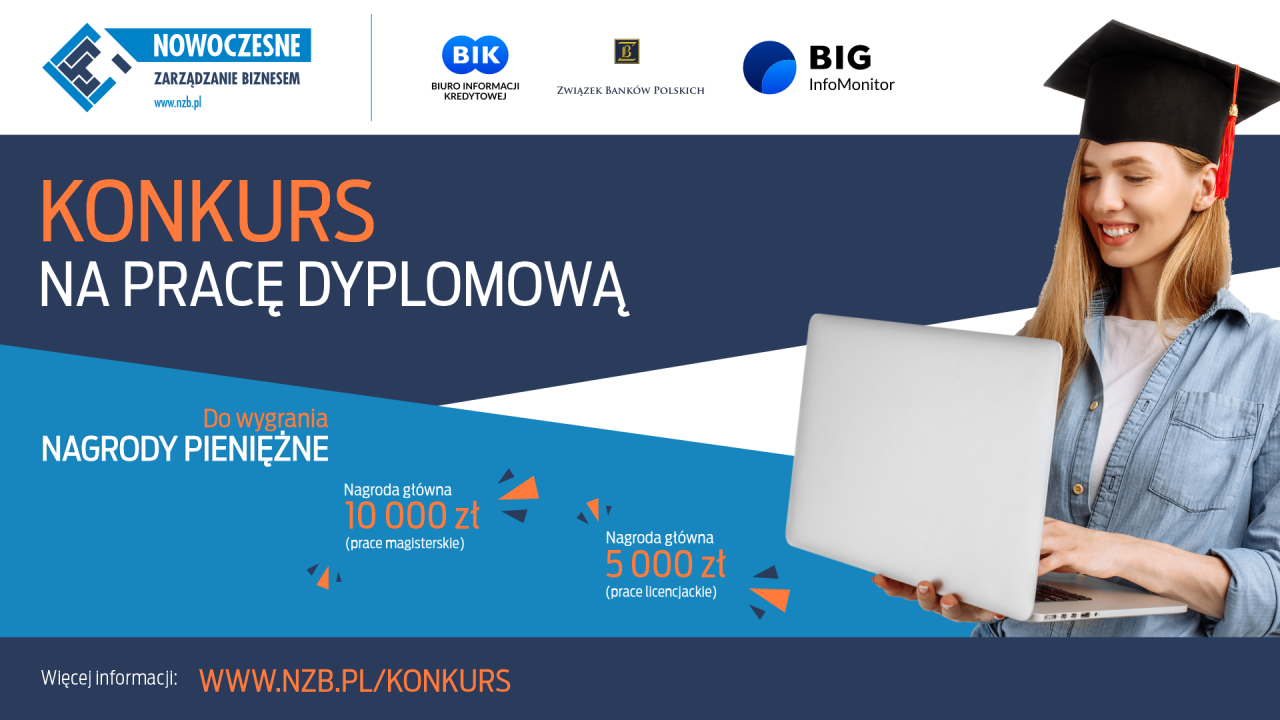 Warszawski Instytut Bankowości - organizator Programu Nowoczesne Zarządzanie Biznesem, który powstał z inicjatywy Związku Banków Polskich i Grupy BIK - zaprasza do udziału w konkursie na najlepsze prace licencjackie i magisterskie z zakresu tematyki zarządzania ryzykiem finansowym, wiarygodności finansowej oraz rynku kredytowego i pożyczkowego (szczegółowy opis poniżej).