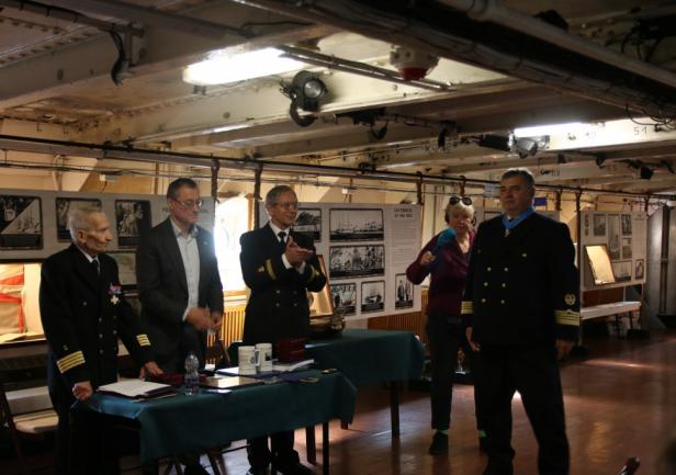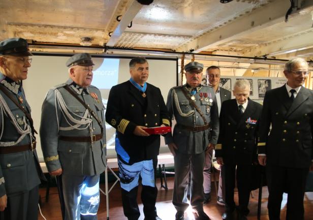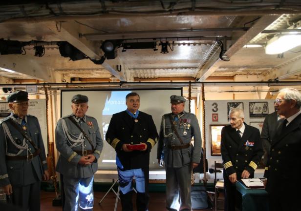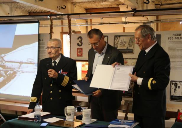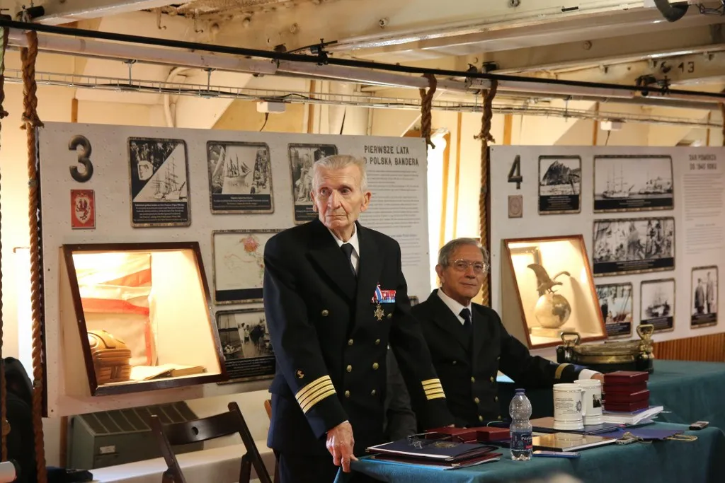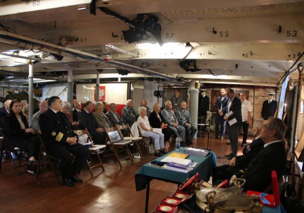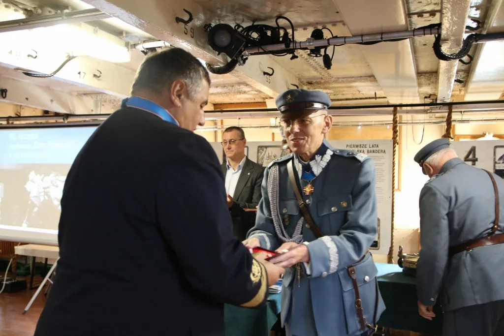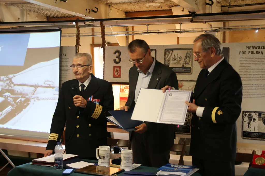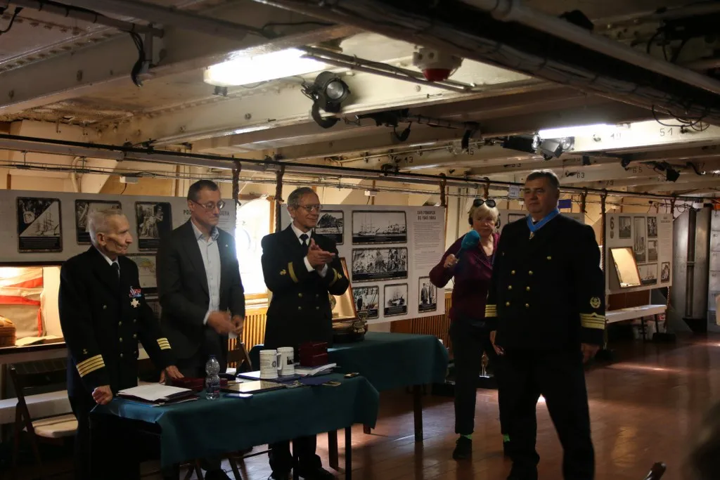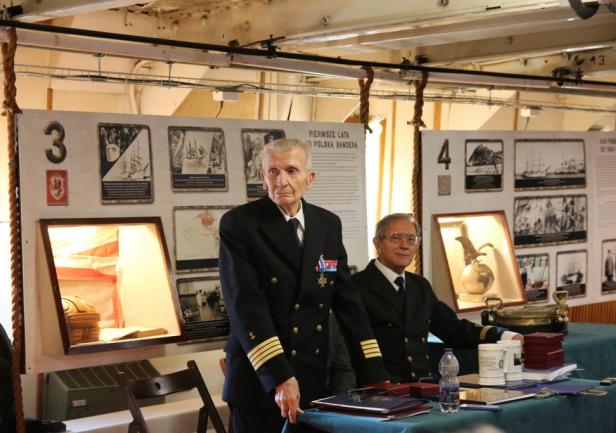 Uroczystość zakończył symboliczny akt przekazania przez prof. dr. kpt. ż.w. Daniela Dudę pamiątkowego bulaju z pierwszego rejsu „Daru Młodzieży” do zbiorów Narodowego Muzeum Morskiego w Gdańsku.
