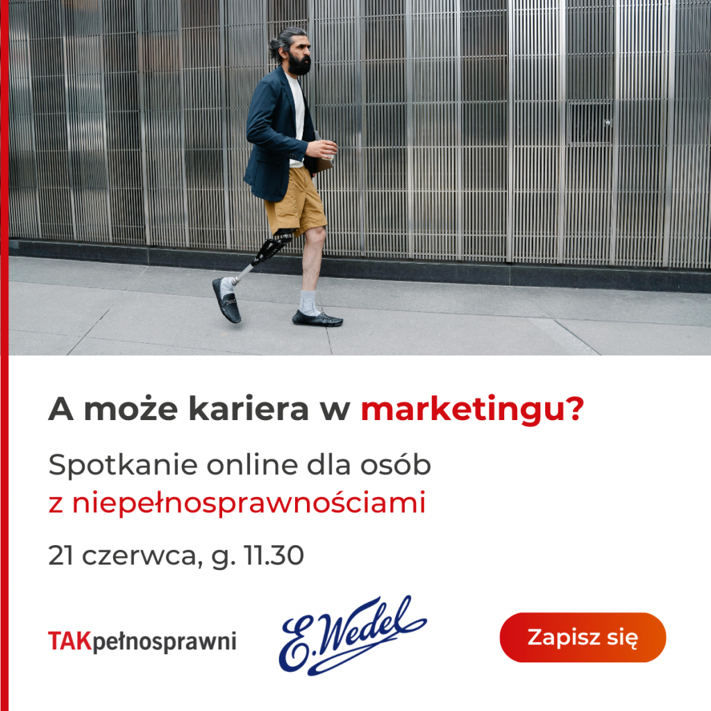 Fundacja TAKpełnosprawni, zaprasza na kolejne spotkanie już 21 czerwca o godzinie 11:30, które potrwa 90 minut i będzie poświęcone pracy w marketingu w E. Wedel. Poprzednie dotyczyły kariery w księgowości, contact center oraz na recepcji i zostały bardzo dobrze przyjęte. Udział w spotkaniu jest całkowicie bezpłatny.