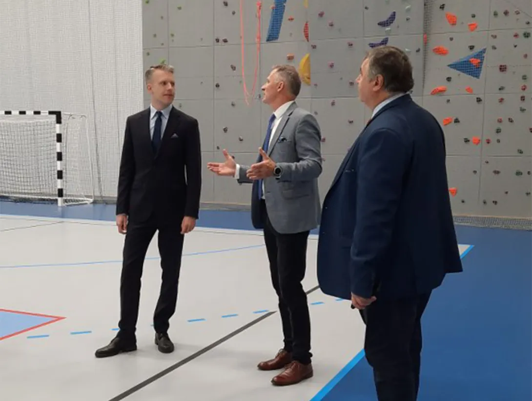 W czasie spotkania JM Rektor prof. dr hab. inż. kpt. ż.w. Adam Weintrit przedstawił Ministrowi bieżące sprawy Uczelni oraz omówił możliwość realizacji II etapu budowy kompleksu sportowo-akademickiego. Następnie JM Rektor wraz z Kanclerzem UMG mgr. Filipem Malatą oraz Dyrektorem Centrum Sportu i Rekreacji UMG dr. Andrzejem Lachowiczem zaprosił Ministra do zwiedzenia nowo otwartego obiektu. W czasie prezentowania poszczególnych pomieszczeń obiektu, Kanclerz UMG przedstawił Ministrowi plany realizacji II etapu budowy kompleksu sportowo-akademickiego.