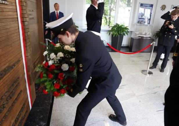 W związku z przypadającą w tym roku 80. rocznicą lądowania wojsk sprzymierzonych w Normandii – największej operacji desantowej II wojny światowej, JM Rektor Uniwersytetu Morskiego w Gdyni prof. dr hab. inż. kpt. ż.w. Adam Weintrit wraz z kontradm. prof. dr. hab. Tomaszem Szubrychtem Rektorem Komendantem Akademii Marynarki Wojennej w Gdyni złożyli kwiaty pod tablicą zlokalizowaną w holu Uczelni upamiętniającą okręty i statki floty handlowej oraz ich załogi broniące polskiego wybrzeża podczas II wojny światowej.