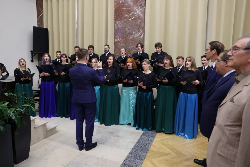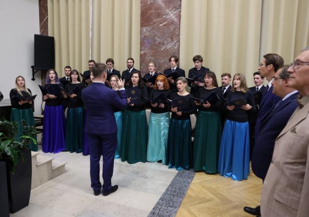 Następnie Chór Akademicki Uniwersytetu Morskiego w Gdyni pod batutą dr. Karola Hilli wykonał Pieśń Szkoły Morskiej autorstwa absolwenta z Tczewa, Michała Hłaski.