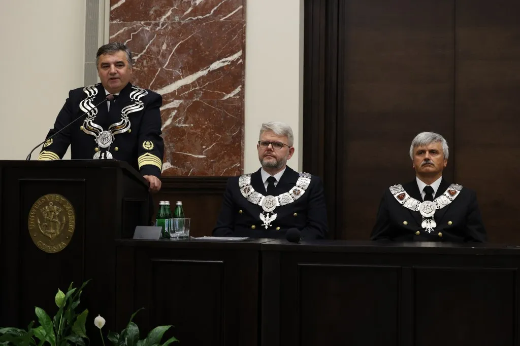 Podczas uroczystości okolicznościowe przemówienie wygłosił JM Rektor Uniwersytetu Morskiego w Gdyni prof. dr hab. inż. kpt. ż.w. Adam Weintrit.