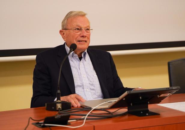 Profesor nakreślił słuchaczom, jakie przeszkody i wyzwania stanęły przed nim i przed jego zespołem ponad 50 lat temu, kiedy rozpoczynali prace nad zbudowaniem systemu nawigacji satelitarnej. Podzielił się informacją, iż po pierwszej prezentacji założeń projektu, ścisłe grono decyzyjne amerykańskiego Ministerstwa Obrony wyraziło negatywną decyzję dla prowadzenia dalszych prac.
