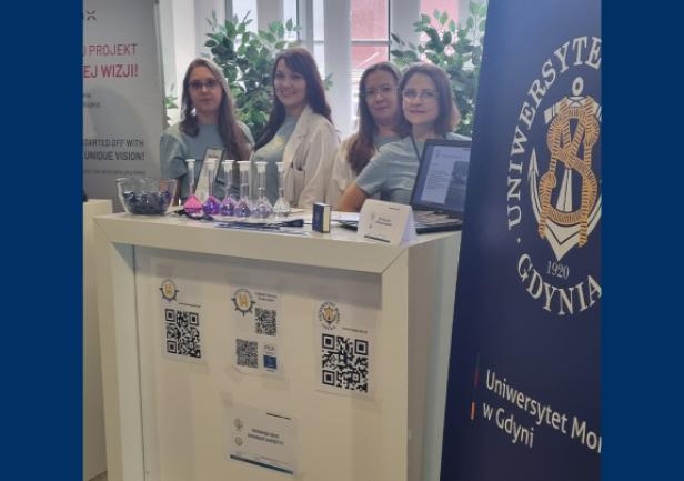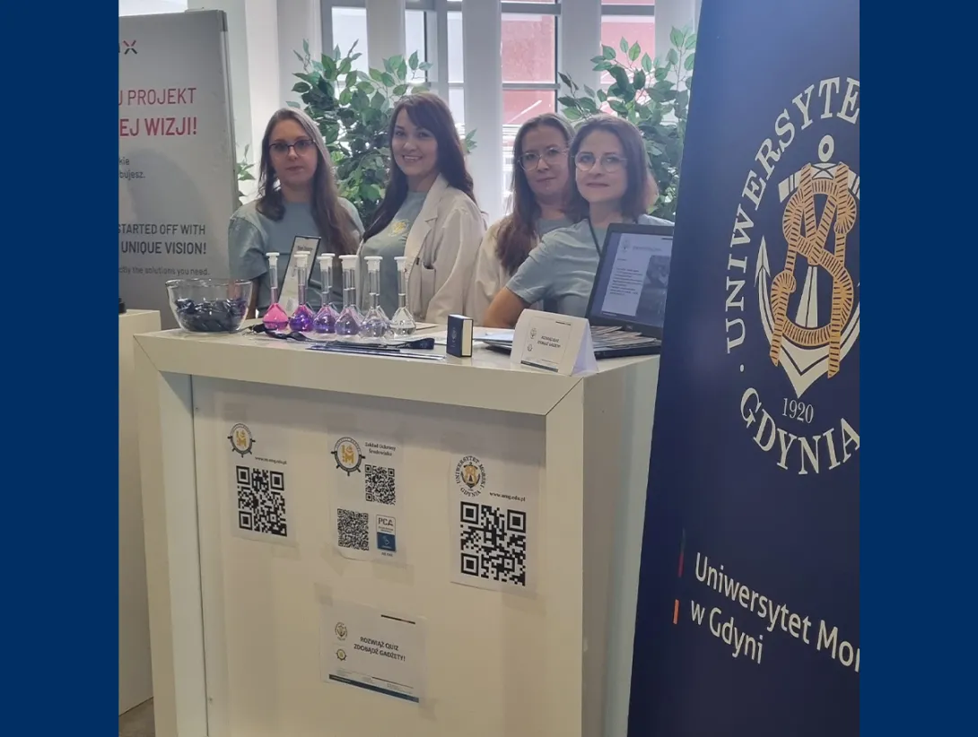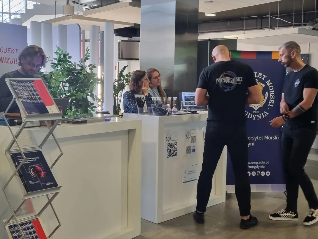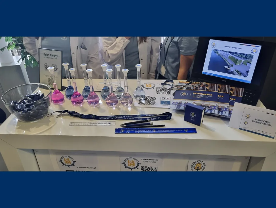 Na stanowisku w budynku można było zapoznać się z ofertą studiów prowadzonych na Uniwersytecie Morskim w Gdyni, jak również dowiedzieć się na temat działalności ZOŚ IM UMG, który zajmuje się prowadzeniem badań fizykochemicznych i chemicznych w różnych matrycach środowiskowych m.in. wodach morskich, powierzchniowych i podziemnych, wodzie do spożycia przez ludzi, jak również ściekach, osadach dennych, glebach czy gruntach.