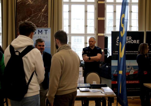 Ciekawe oferty praktyk i staży, stanowiska firm i duże zainteresowanie ze strony studentów – tak wyglądały pierwsze w historii naszej uczelni Marynarskie Targi Pracy. W dniu 23 stycznia 2025 roku w samym centrum naszej uczelni, w auli T. Meissnera Uniwersytetu Morskiego w Gdyni, odbyły się I Marynarskie Targi Pracy.