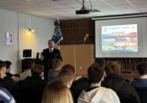 W dniach 12-13.03.2025 r. grupa studentów Kompanii Reprezentacyjnej Uniwersytetu Morskiego w Gdyni wraz z opiekunami udała się do szkół ponadpodstawowych żeglugi śródlądowej w Kędzierzynie-Koźlu oraz Wrocławiu w celu promocji oferty edukacyjnej Uniwersytetu Morskiego w Gdyni oraz przedstawiania bogatej historii i wspaniałych tradycji najstarszej uczelni morskiej w Polsce.