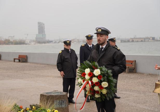 Pod pomnikiem „Tym, którzy odeszli na wieczną wachtę”, usytuowanym na końcu Bulwaru Nadmorskiego w Gdyni, JM Rektor Uniwersytetu Morskiego w Gdyni prof. dr hab. inż. kpt. ż.w. Adam Weintrit w imieniu całej społeczności akademickiej UMG złożył wieniec, by uczcić pamięć tych, którzy nie powrócili z mórz i oceanów.