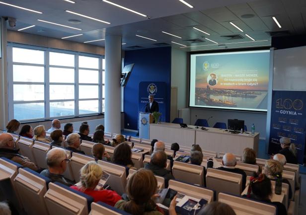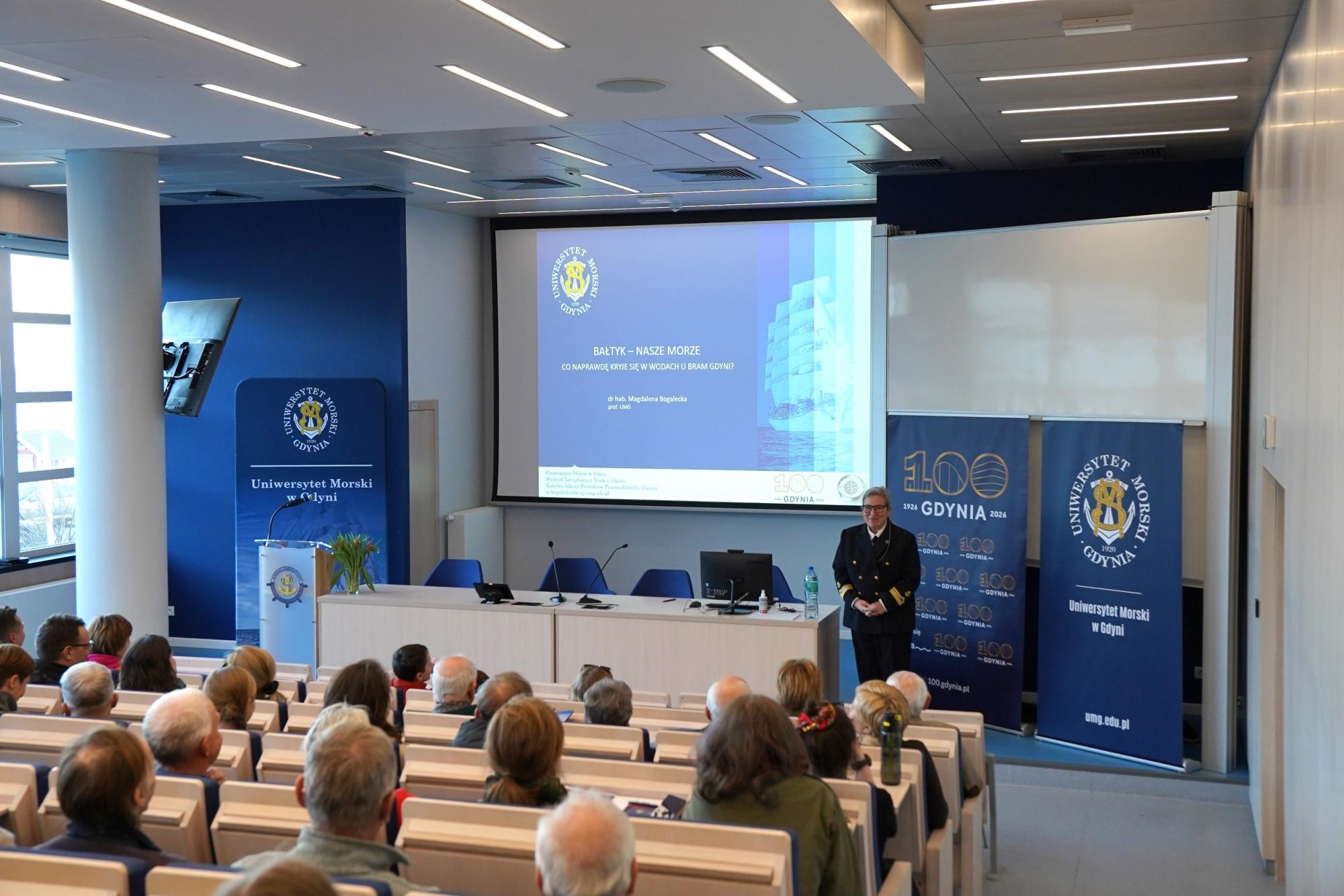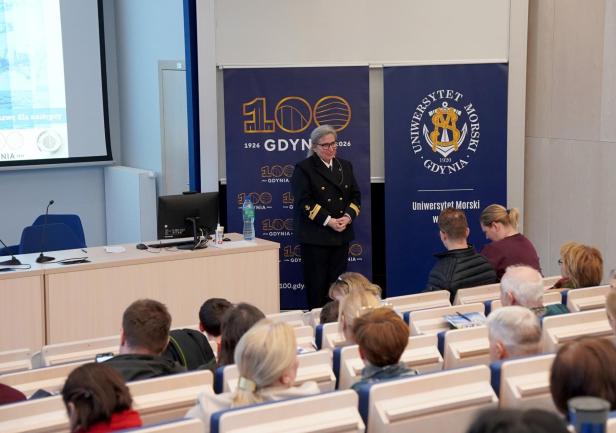 W dniu 9 kwietnia 2026 roku w Auli Wydziału Nawigacyjnego Uniwersytetu Morskiego w Gdyni, mieszczącej się przy al. Jana Pawła II 3, odbył się pierwszy wykład realizowany przez Uczelnię w ramach cyklu popularnonaukowego przygotowanego z okazji 100-lecia Gdyni.