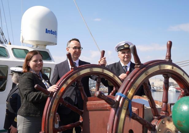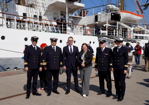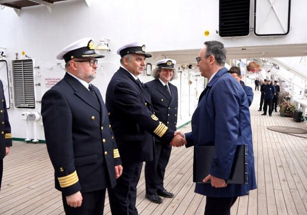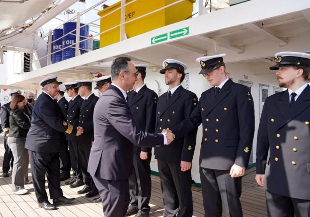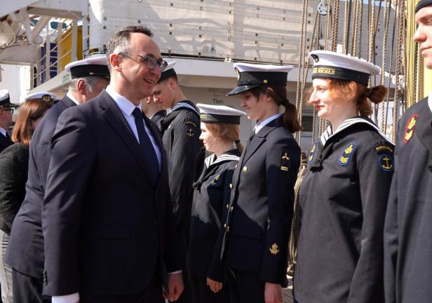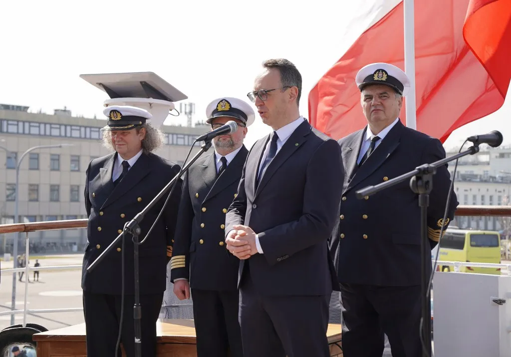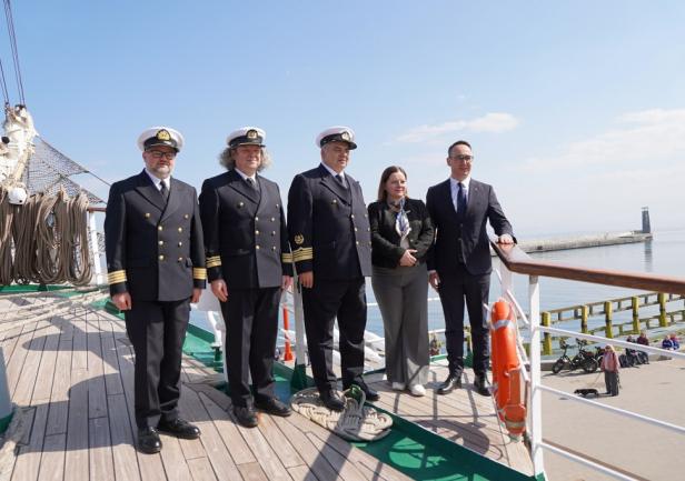 Minister Dariusz Klimczak w swoim wystąpieniu w sposób szczególny odniósł się do znaczenia rejsu w kontekście rozwoju kompetencji przyszłych kadr gospodarki morskiej oraz promocji polskiego szkolnictwa morskiego w świecie. Przypomniał również o trwającym konkursie na nazwę dla następcy „Daru Młodzieży”: