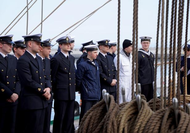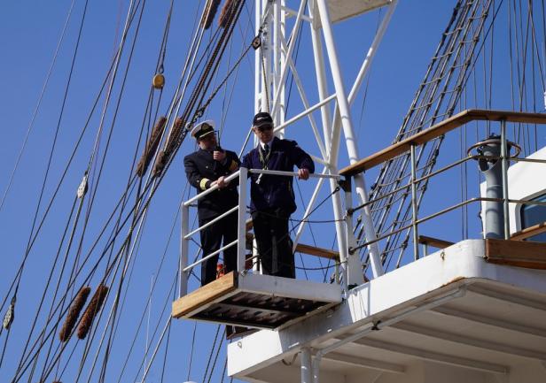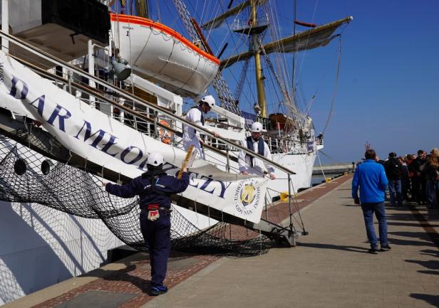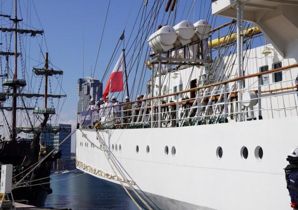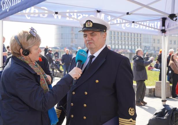 Pan Komendant już przygotował żagle do postawienia, także mam nadzieję, że zobaczymy, gdy statek opuści port, że postawi żagle. Będzie to na pewno niesamowity widok, bardzo rzadko się zdarza, żeby na Zatoce Gdańskiej nasz żaglowiec wypływał pod żaglami.
