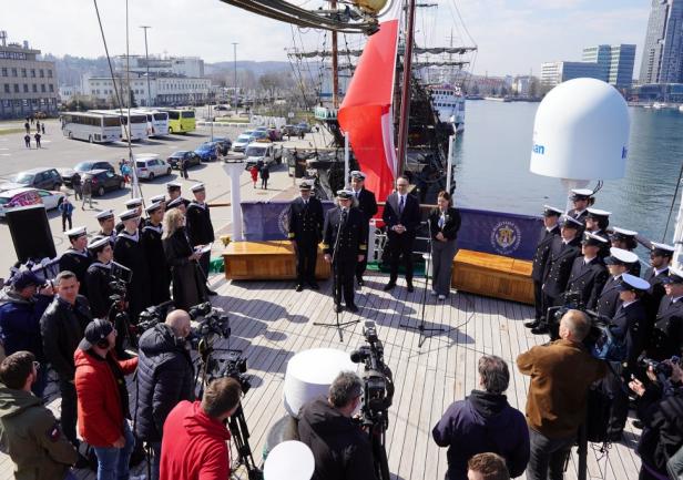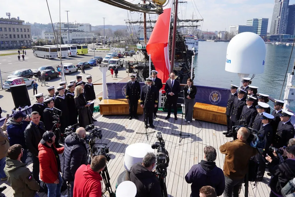 Bezpośrednio przed wyjściem jednostki w morze, na pokładzie żaglowca odbyła się konferencja prasowa z udziałem władz Uniwersytetu Morskiego w Gdyni, Ministerstwa Infrastruktury oraz władz miejskich Gdyni. Uczelnię reprezentowali JM Rektor prof. dr hab. inż. kpt. ż.w. Adam Weintrit, a także Dyrektor Działu Armatorskiego i Praktyk Morskich mgr inż. kpt. ż.w. Dariusz Jellonnek, ze strony Ministerstwa Infrastruktury głos zabrał Minister Dariusz Klimczak. Miasto Gdynię reprezentowała Prezydent Aleksandra Kosiorek.