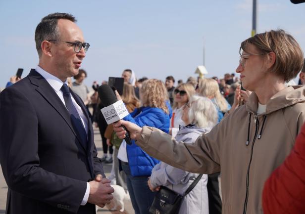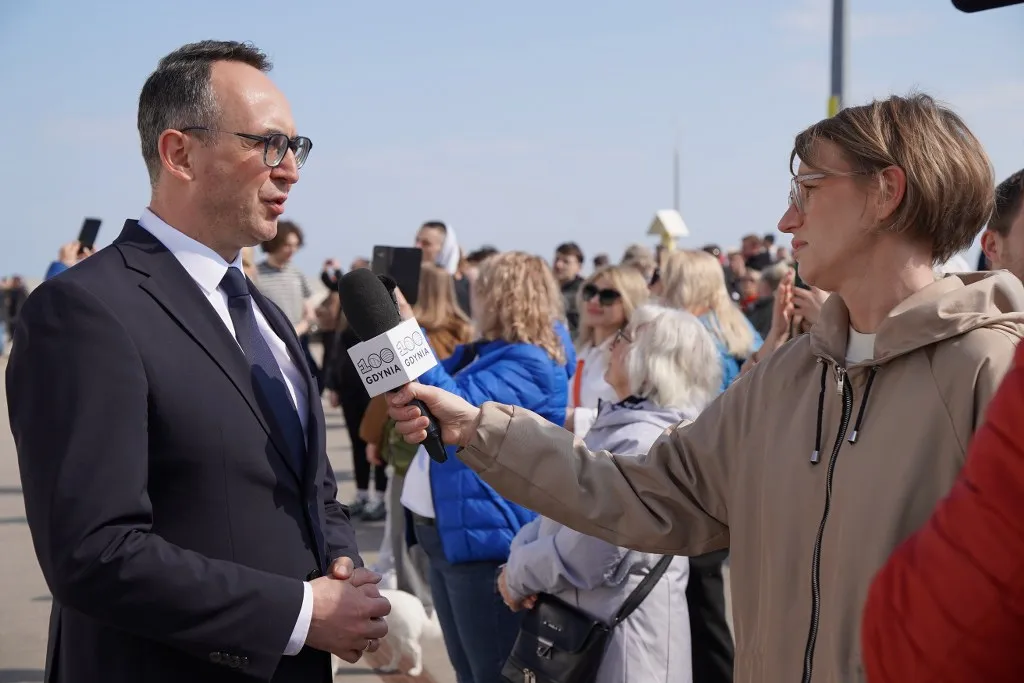 Mamy to, co Pani Prezydent powiedziała, wspaniały żagiel na pierwszym maszcie, z logiem stulecia Miasta Gdyni i jesteśmy bardzo dumni, że możemy promować Miasto Gdynia na całym świecie, także w Stanach Zjednoczonych. Życzę Panu Komendantowi, załodze i praktykantom stopy wody pod kilem i wiatrów w żagle. Powodzenia!