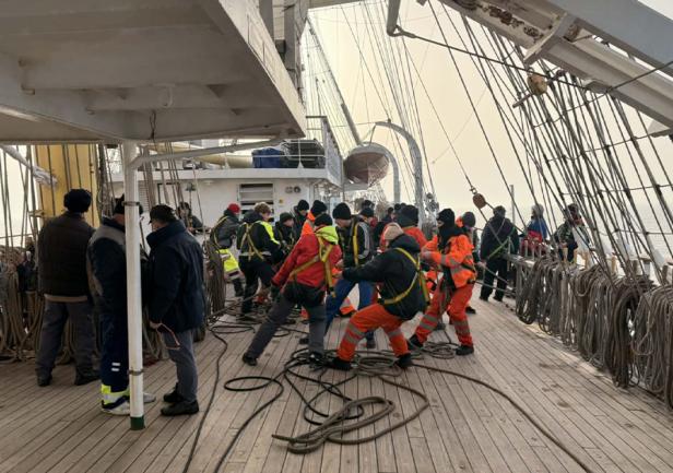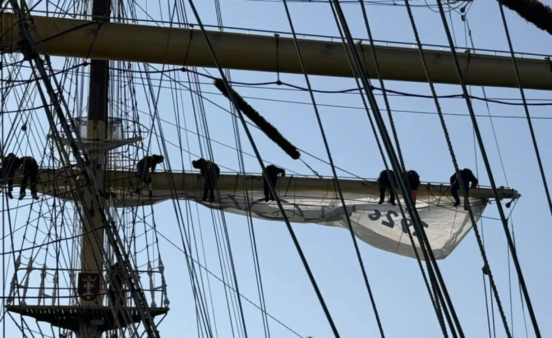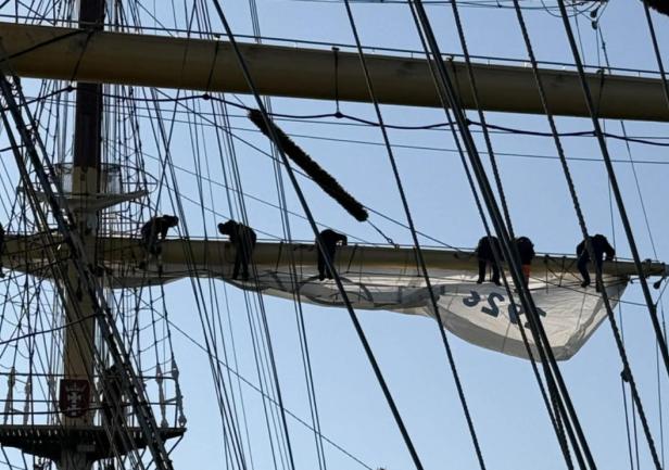 Na maszcie "Daru Młodzieży" zawisł żagiel stulecia Gdyni