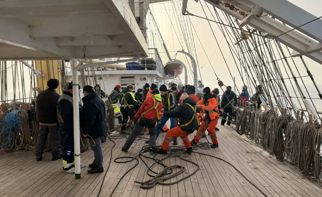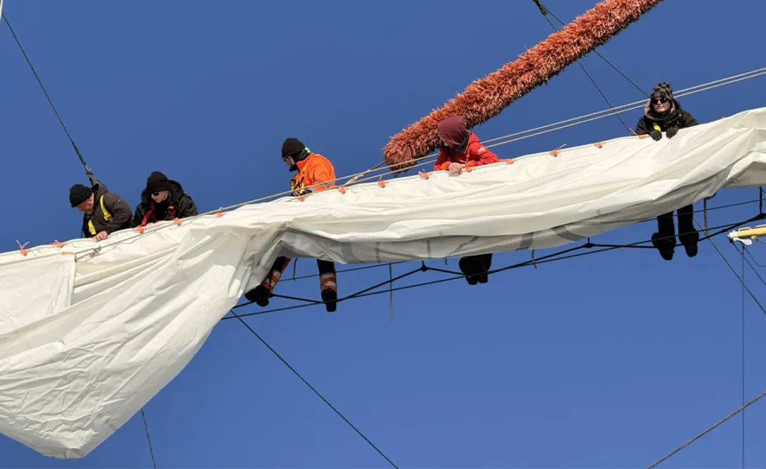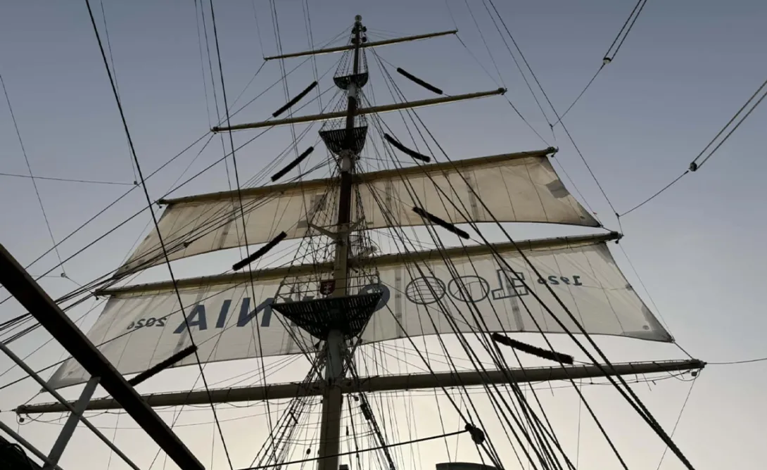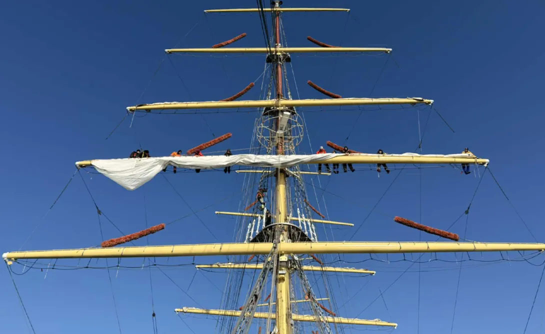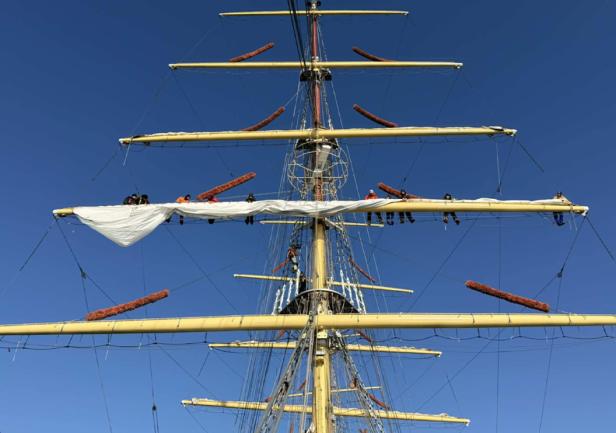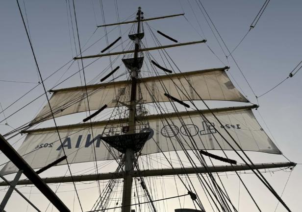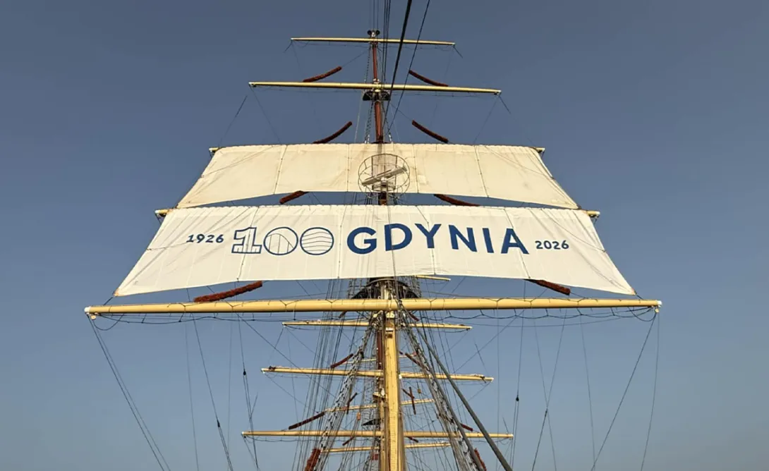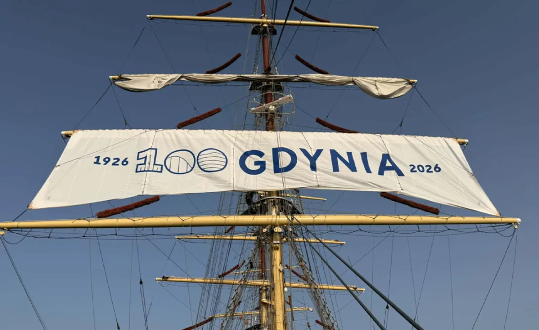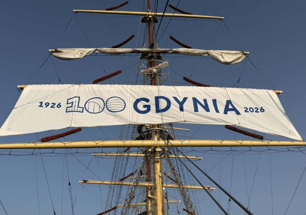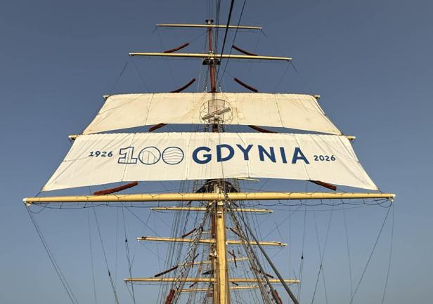 Na maszcie „Daru Młodzieży” – żaglowca, który od ponad czterech dekad reprezentuje Uniwersytet Morski w Gdyni, od kilku dni powiewa żagiel uszyty specjalnie z okazji stulecia Gdyni.