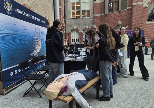 Stoisko Uniwersytetu Morskiego w Gdyni cieszyło się dużym zainteresowaniem uczestników konferencji — wielu odwiedzających zapoznawało się z ofertą naszej Uczelni oraz chętnie rozmawiało z jej przedstawicielami.