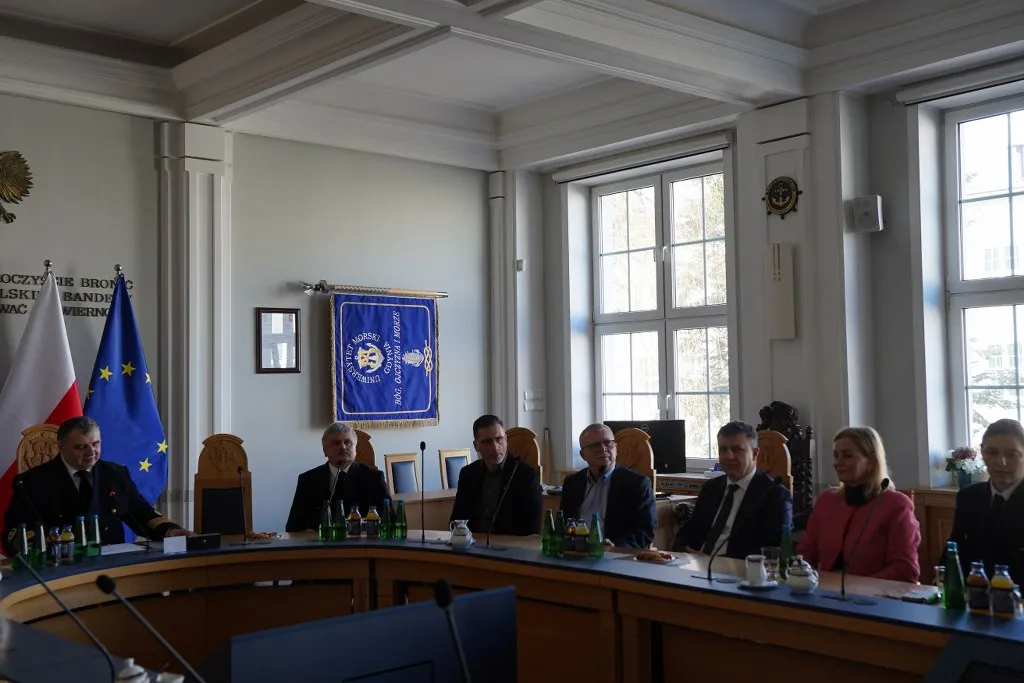 W dniu 6 marca 2026 roku w gmachu głównym Uniwersytetu Morskiego w Gdyni odbyło się spotkanie władz Uczelni z przedstawicielami Departamentu Edukacji Morskiej w Ministerstwie Infrastruktury oraz Departamentu Budżetu w Ministerstwie Infrastruktury.