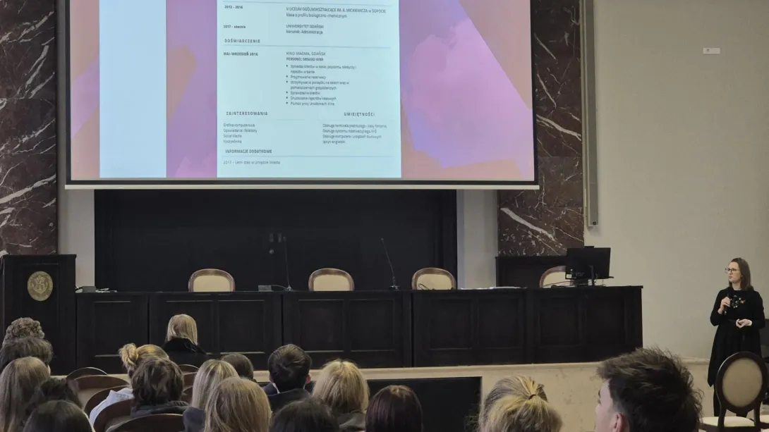 W ramach wydarzenia odbyły się inspirujące wykłady: „5 błędów w CV, przez które rekruter wybierze innego kandydata”, poprowadzony przez mgr Katarzynę Bubulę (doradcę zawodowego UMG), oraz „Praktyczne techniki radzenia sobie ze stresem egzaminacyjnym”, przeprowadzony przez Alicję Szmidkę.