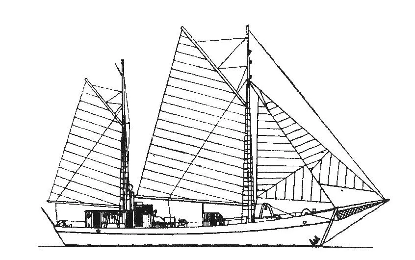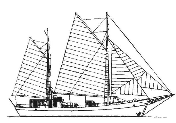 Kadłub przeholowano do Stoczni Rybackiej w Gdyni i w latach 1950/51 przebudowany został na żaglowiec.  Miał służyć  jako rybacki statek szkolny Państwowej Szkole Rybaków Morskich, działającej w ramach PCWM. Ożaglowany jako kecz gaflowy, wyposażony został w drzewca z sosny, natomiast stalowy bezan spełniał jednocześnie funkcję komina. Śródokręcie pomieściło windę trałową i zejściówkę do ładowni, na sterburcie zamocowano dwa kozły sieciowe. Kubryk mógł przyjąć 14 osób załogi szkolnej.