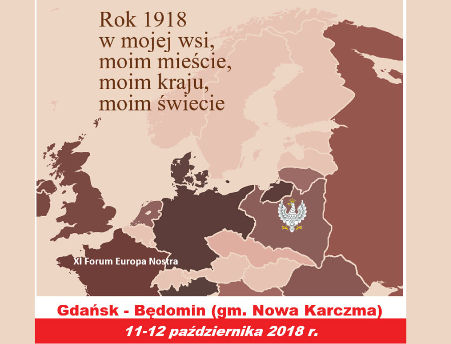 Uniwersytet Morski w Gdyni współorganizuje Konferencję Niepodległościową „Rok 1918 w mojej wsi, moim mieście, moim kraju, moim świecie”. Konferencja Niepodległościowa ma wymiar naukowy i patriotyczny. Organizowana jest w ramach XI Forum Europa Nostra. Rozpocznie się ona 11 października 2018 r. w Gdańsku na Wydziale Historycznym Uniwersytetu Gdańskiego. Kolejnego dnia (12 października 2018 r.) uczestnicy udadzą się do Będomina (gmina Nowa Karczma), gdzie znajduje się Muzeum Hymnu Narodowego. Organizatorzy zamierzają przedstawić rok 1918 jako przełomowy moment w dziejach Polski, Europy i świata. Powstał wtedy nowy ład polityczny i odrodziło się Państwo Polskie. Historia toczyła się nie tylko na szczeblu politycznym w wymiarze międzynarodowym ale również w rodzinach i społecznościach lokalnych miast i wsi.