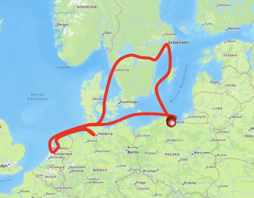 Hamburg - Łaba - Kanał Kiloński - Bornholm - Gdynia