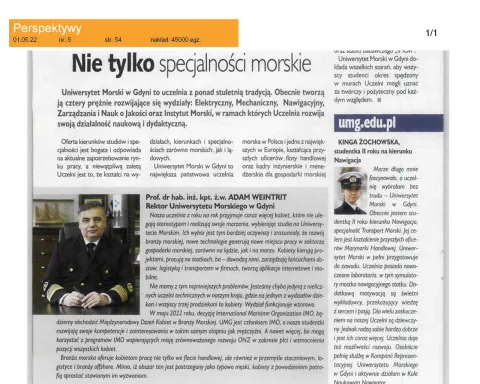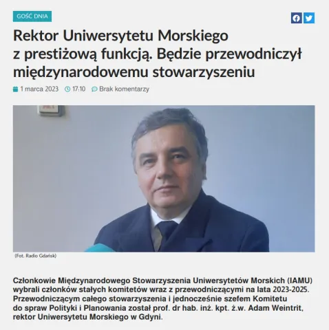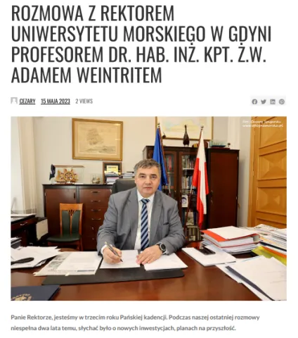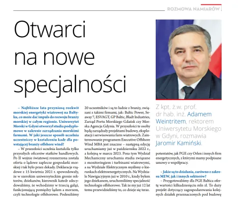 „Uniwersytet Morski w Gdyni chce odegrać ważną rolę w budowie farm wiatrowych na Bałtyku” mówi JM Rektor UMG prof. Adam Weintrit dla Radia Zet