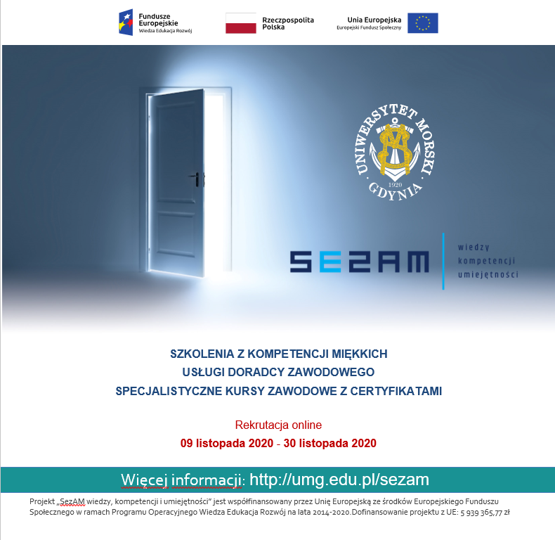 Projekt „SezAM wiedzy, kompetencji i umiejętności” jest współfinansowany przez Unię Europejską ze środków Europejskiego Funduszu Społecznego w ramach Programu Operacyjnego Wiedza Edukacja Rozwój