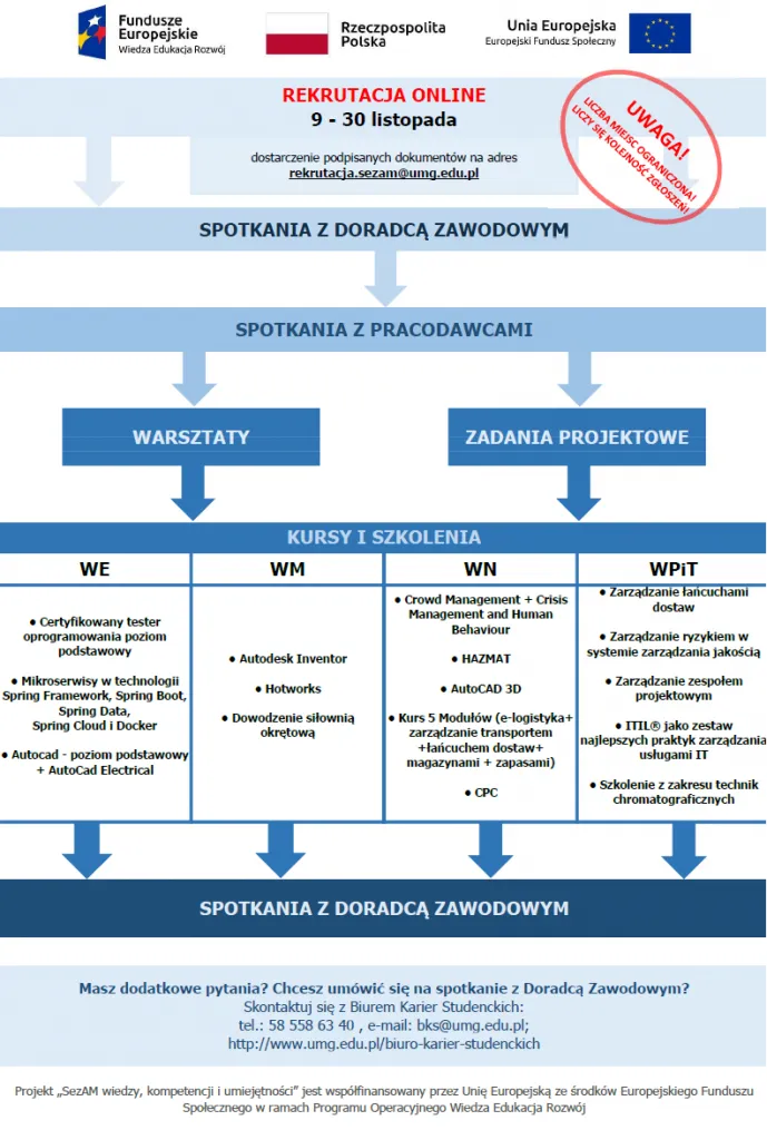 e-mail: rekrutacja.sezam@umg.edu.pl wypełnione i podpisane dokumenty rekrutacyjne: