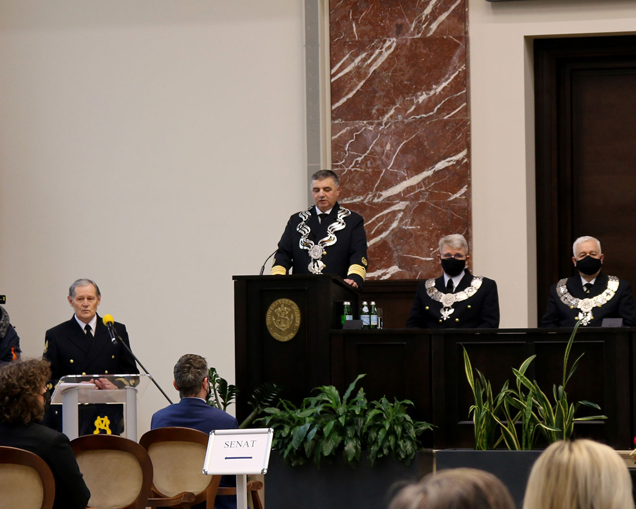 Naszą Uczelnię od ponad stu lat tworzą ludzie, których pasja i zaangażowanie były siłą napędową rozwoju polskiej gospodarki morskiej. W ubiegłym roku Senat wszczął postępowanie o nadanie tytułu doktora honoris causa profesorowi Danielowi Dudzie, który to tytuł nadaliśmy wiosną tego roku za szczególne zasługi dla Uczelni. Dwa tygodnie temu Senat UMG na mój wniosek podjął decyzję o wszczęciu postępowania o nadanie tytułu doktora honoris causa prof. dr. inż. kpt. ż.w. Mirosławowi Jurdzińskiemu, współtwórcy polskiej szkoły nawigacji.